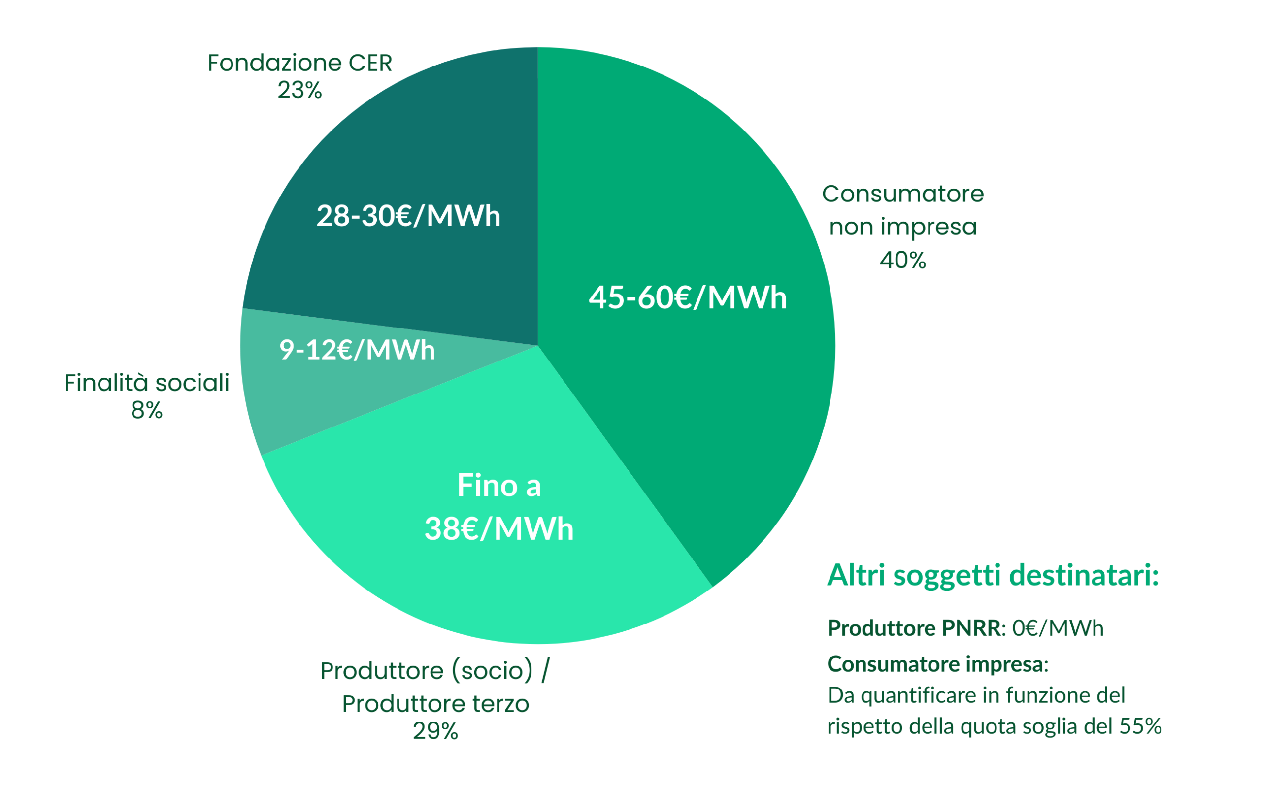 Le quote di incentivo sono le parti dell’incentivo economico riconosciuto dal GSE per l’energia condivisa all’interno della CER. Vengono calcolate sulla base dei kWh prodotti e consumati simultaneamente e poi suddivise tra i membri secondo le regole stabilite dalla comunità. Nel caso di CER Priula, le quote incentivo verranno ripartite come segue: